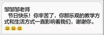 还记得,那个和室友发生矛盾、课间流着泪找我聊天的女孩。我惊讶地看着她,这个看上去那么热情那么活泼的女孩,内心也有着这样的无助吗?我突然想起,少女时代的我,不也是又胆小又敏感又渴望友情又害怕亲密吗?我们像朋友一样聊着我们的喜欢和不喜欢、自信和胆怯,聊着我们头脑中偶尔浮过的奇怪又有趣的念头,蓝天白云在头上飘过,我们的世界都逐渐变得豁然开朗。找工作时,碰到又向往又认可自己的单位,她欣喜的告诉我“邹老师啊,告诉你一个好消息”;上班了,开展了自己满意的活动遇到了喜爱的同事,她忍不住地给我发信息“邹老师,我觉得我好幸福”。亲爱的小ZQ,你知道我是含着泪看你的信息的吗?我也想对你说,遇到你,我也好幸福!