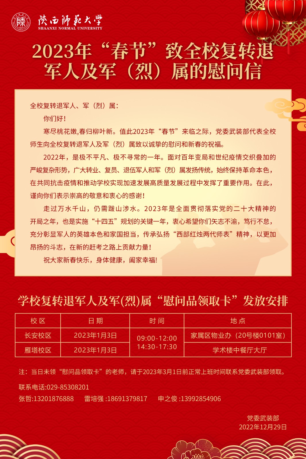 2023年“春节”致全校复转退军人及军 (烈)属的慰问信
