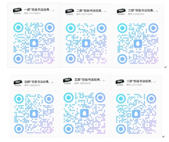 (1)“悦临书法经典,涵养师德情操”临摹打卡活动学分认证组QQ群二维码(选择一个群加入即可)