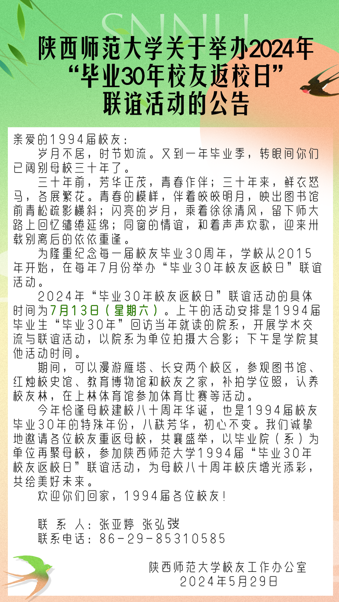 开云kaiyun官方网站关于举办2024年“毕业30年校友返校日”联谊活动的公告