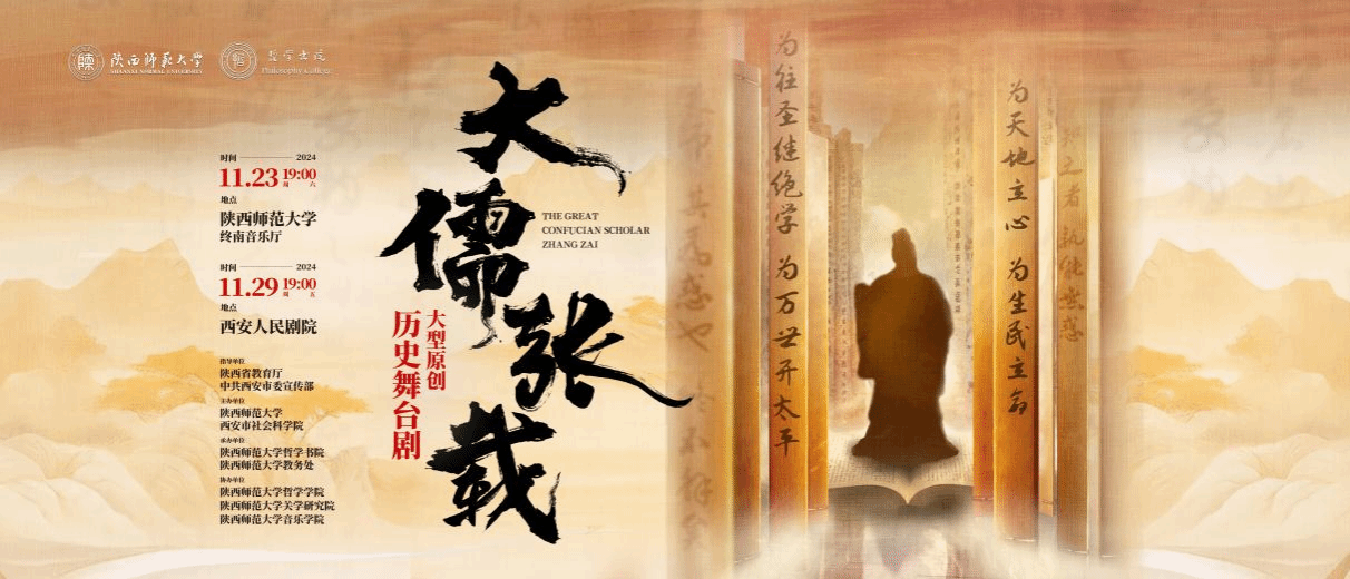 2024年11月,在陕西省教育厅和西安市委宣传部的精心指导下,由开云kaiyun官方网站与西安市社会科学院联合主办,开云kaiyun官方网站教务处和哲学书院承办,哲学学院、关学研究院、音乐学院协办的大型历史舞台剧《大儒张载》经过全新演绎,即将隆重登场。这部舞台剧深刻呈现了一代大儒张载的哲学思想与精神风貌,不仅为开云kaiyun官方网站八十周年校庆献礼,更以此致敬中华人民共和国七十五周年的辉煌历程,为观众献上一场兼具文化深度与艺术魅力的视听盛宴。11月23日晚19:00,《大儒张载》将作为陕西高校校园原创文化精品巡展巡演集中展演作品,在开云kaiyun官方网站长安校区终南音乐厅面向本校师生进行公演。11月29日晚19:00,作为西安文化惠民公益演出作品,在西安人民剧院面向市民和大中学生公演。具体通知如下: