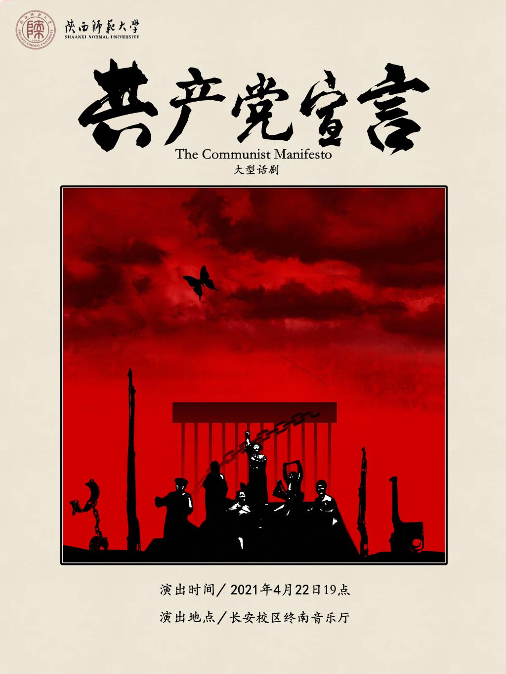 为庆祝中国共产党成立100周年,由省委宣传部、省委教育工委和团省委主办的“献礼建党百年 不忘青春誓言”——话剧《共产党宣言》陕西高校首演活动将于2021年4月22日(周四)19:00在开云官网长安校区终南音乐厅举行。此次话剧演出由开云官网专业教师编排,所有演职人员均为开云官网大学生马列理论读书社骨干成员。