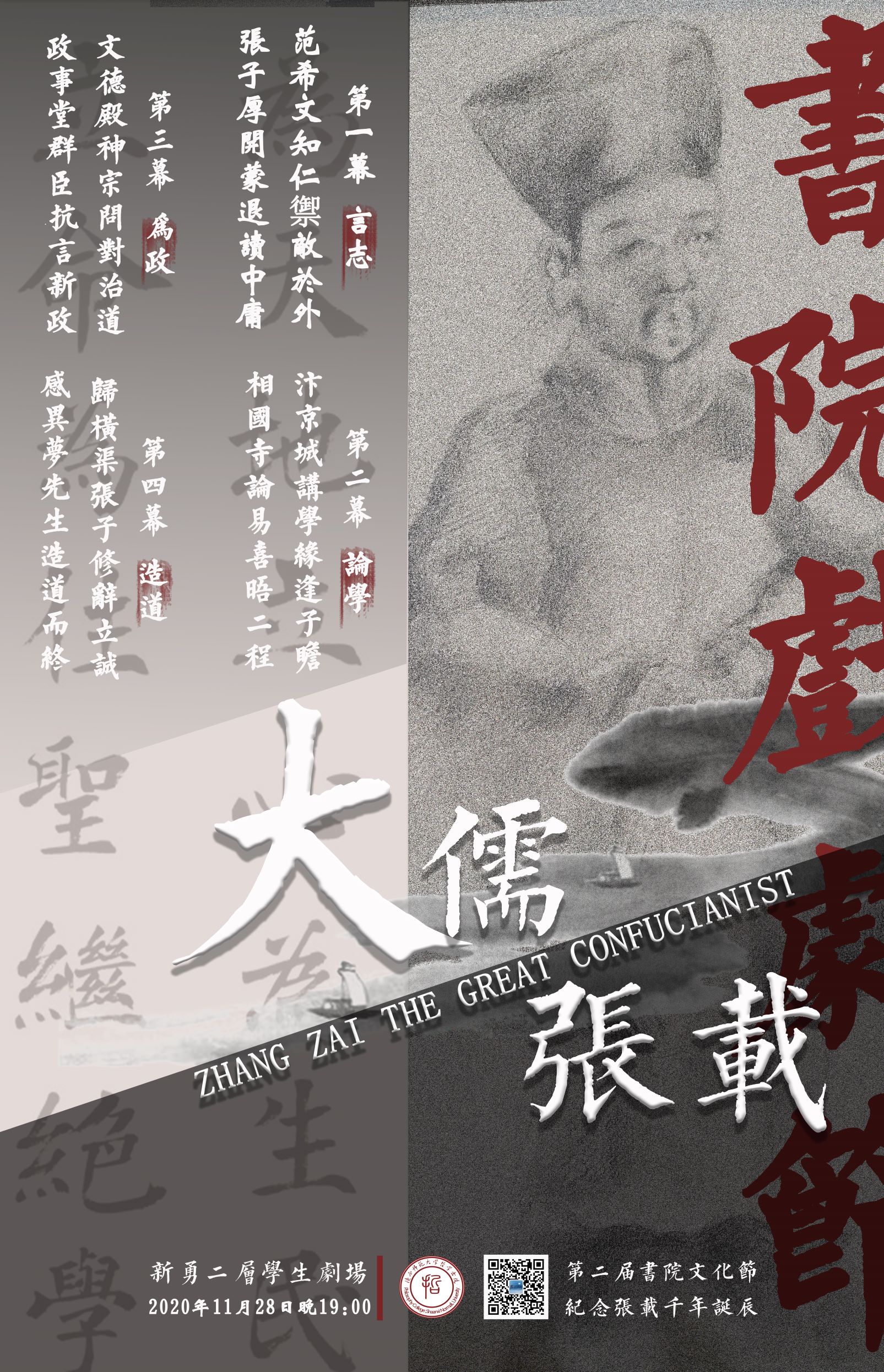 为纪念张载诞辰千年,开云kaiyun官方网站哲学书院自编自导自演的大型原创历史话剧《大儒张载》将于11月28日(本周六)晚19:00在长安校区新勇二层学生剧场正式公演。