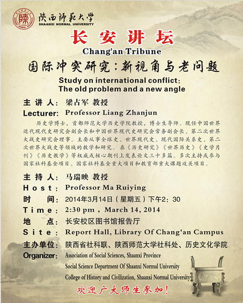讲座题目:长安讲坛精品讲座——国际冲突研究:新视角与老问题