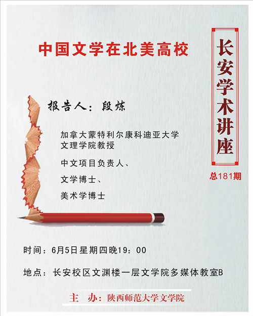 讲座题目:长安学术讲座:中国文学在北美高校