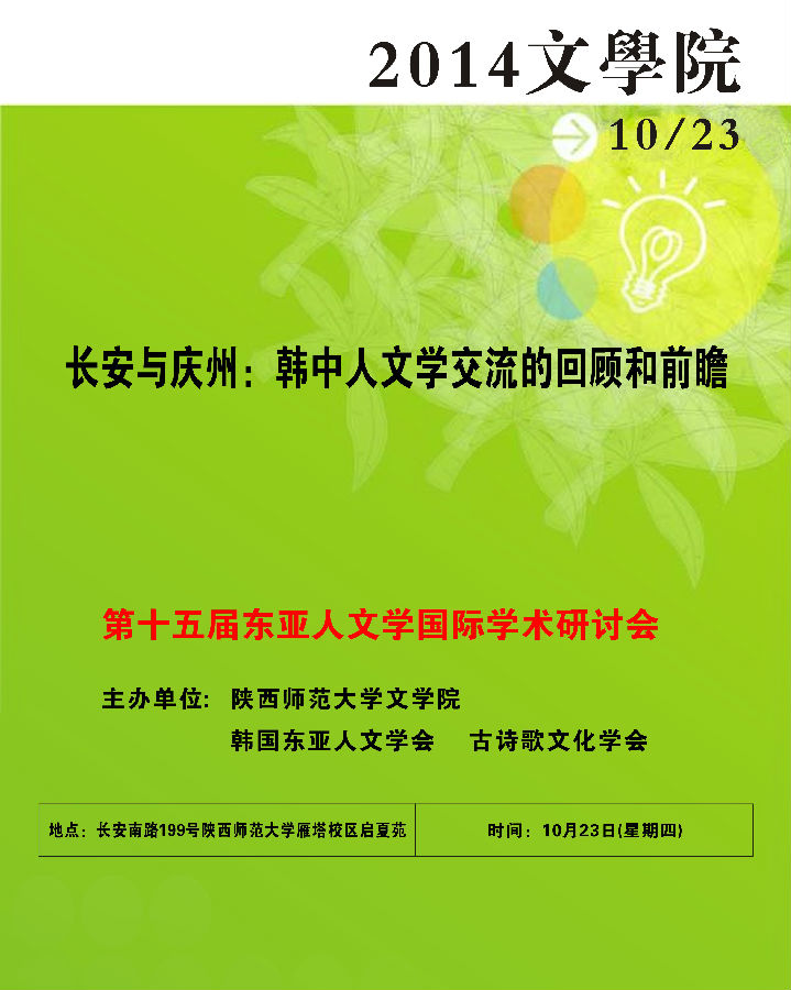 讲座题目:第十五届东亚人文学国际学术研讨会
