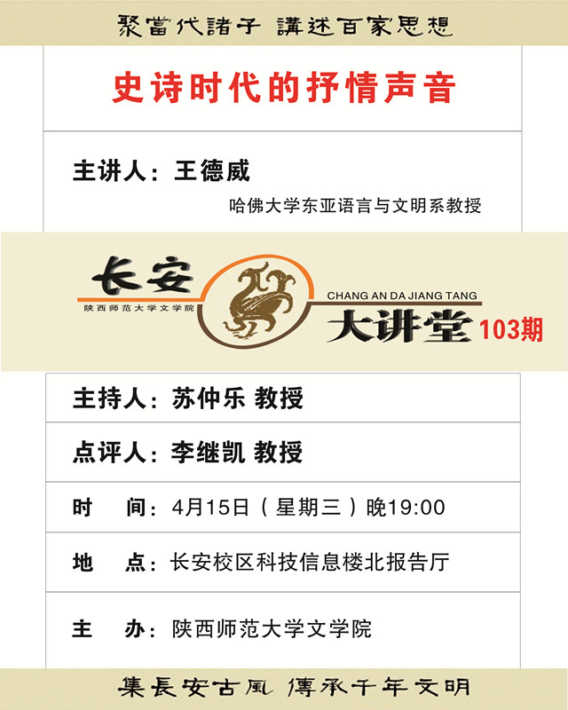 讲座题目:史诗时代的抒情声音