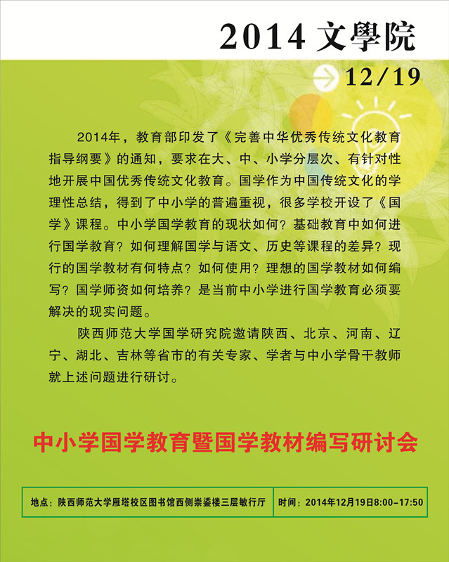 讲座题目:中小学国学教育暨国学教材编写研讨会