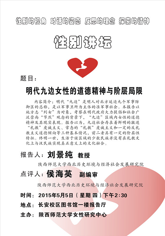 讲座题目:明代九边女性的道德精神与阶层局限