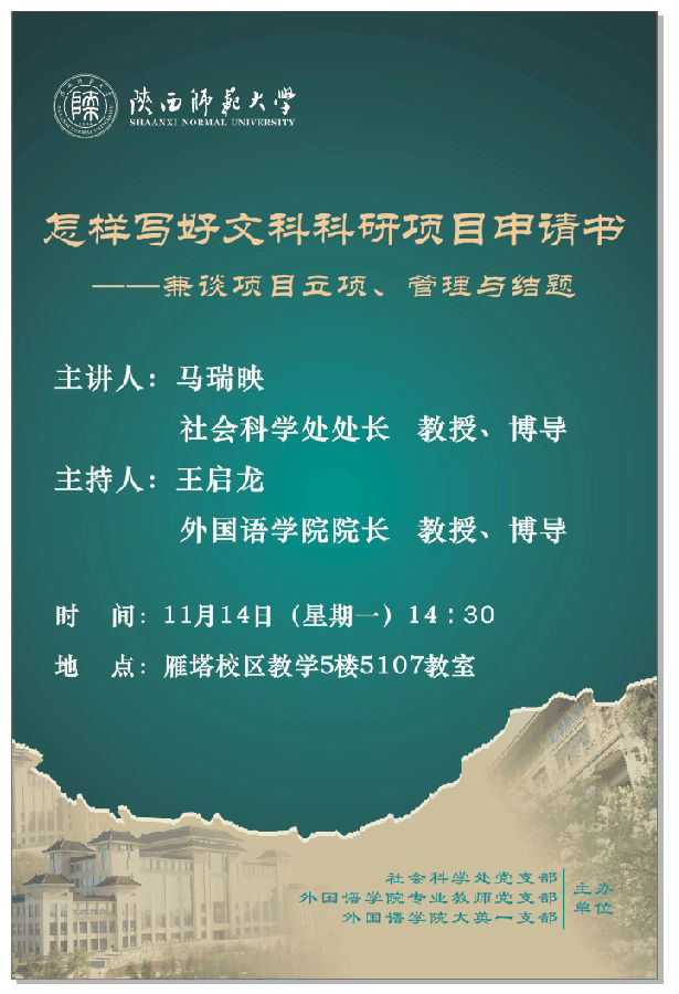 讲座题目:怎样写好文科科研项目申请书——兼谈项目立项、管理与结题