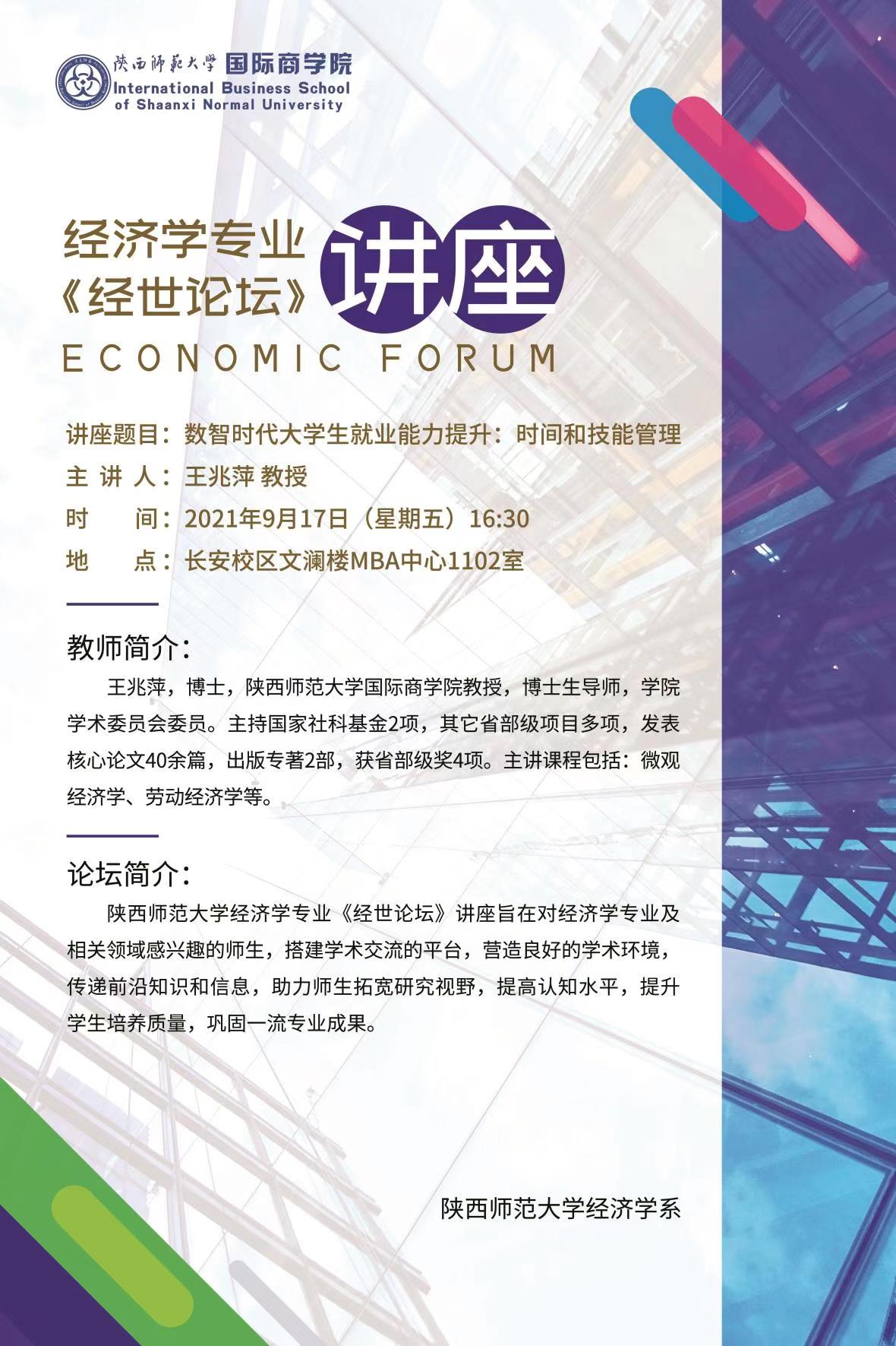 经济学专业《经世论坛》讲座——数智时代大学生就业能力提升:时间和技能管理