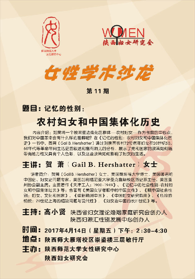 讲座题目:记忆的性别:农村妇女和中国集体化历史