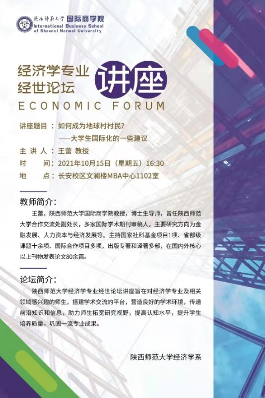 经济学专业《经世论坛》讲座:如何成为地球村村民?——大学生国际化的一些建议