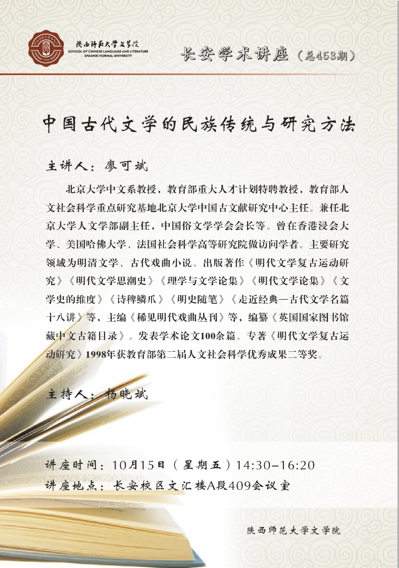 长安学术讲座(总453期):中国古代文学的民族传统与研究方法