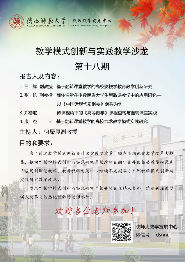活动类别:教学模式创新与实践教学沙龙第18期:翻转课堂教学模式应用与实践