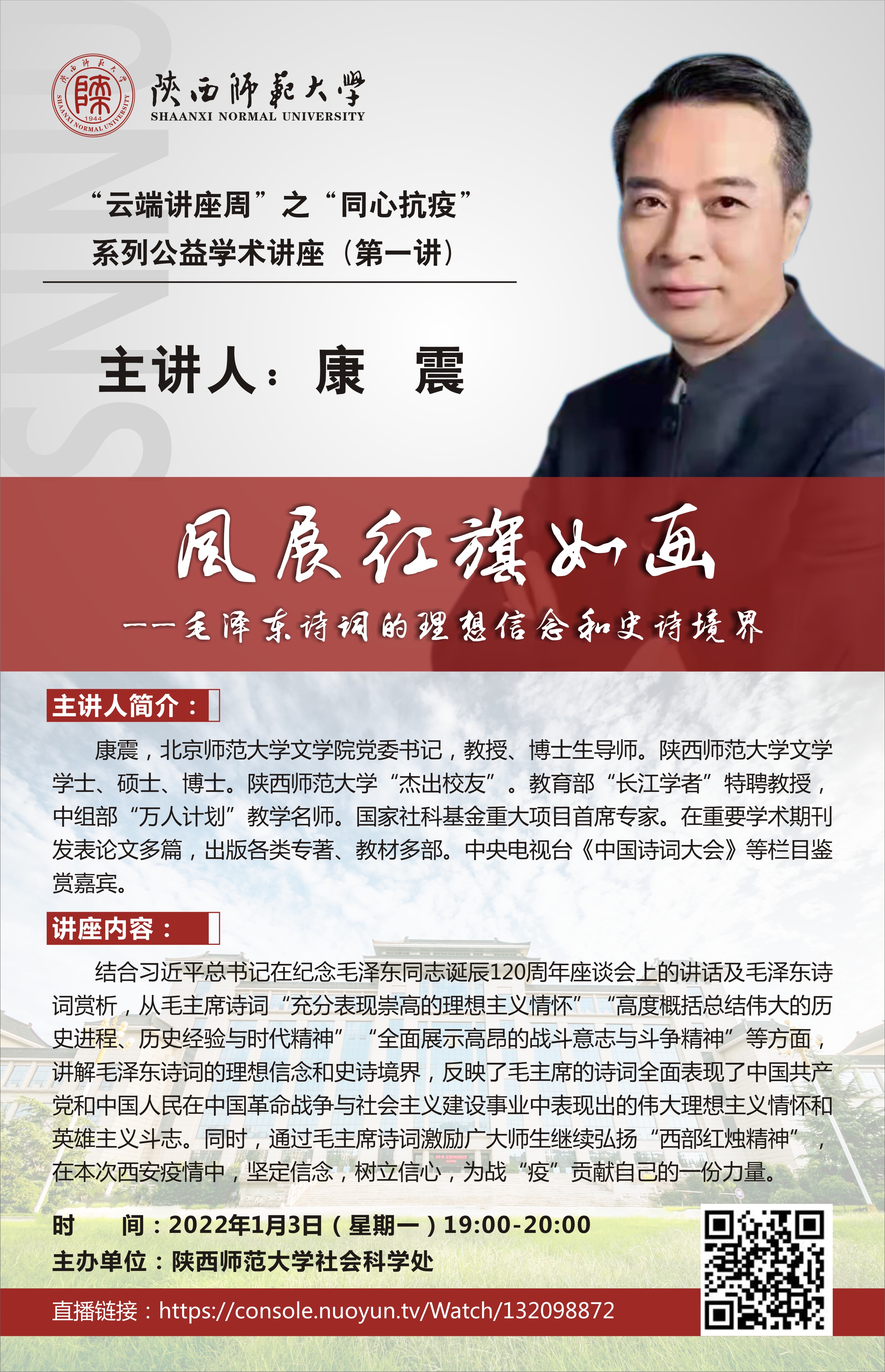 “云端讲座周”之“同心抗疫”系列公益学术讲座(第一讲):风展红旗如画——毛泽东诗词的理想信念和史诗境界