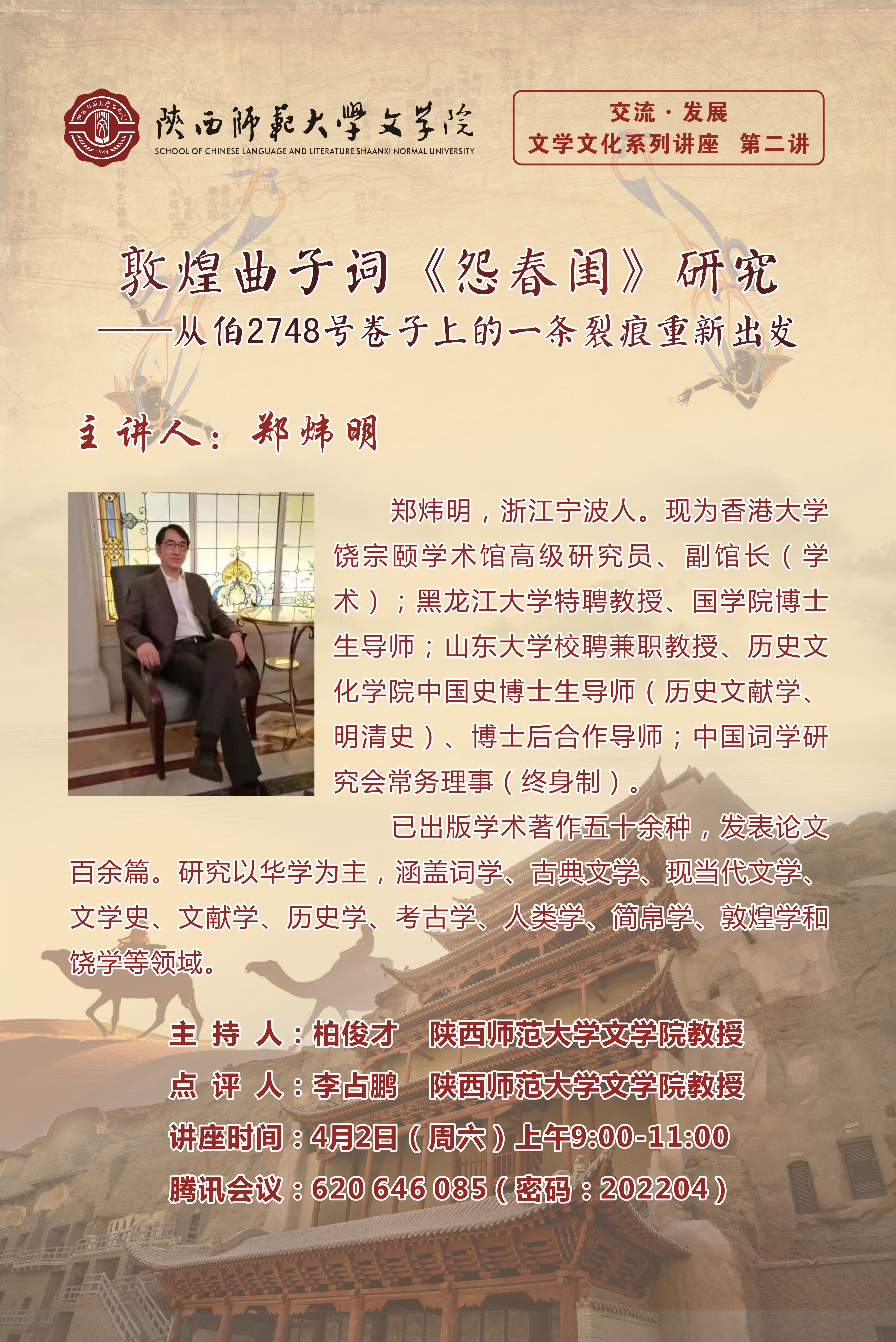 交流 发展:文学文化系列讲座(第二讲)——敦煌曲子词《怨春闺》研究
