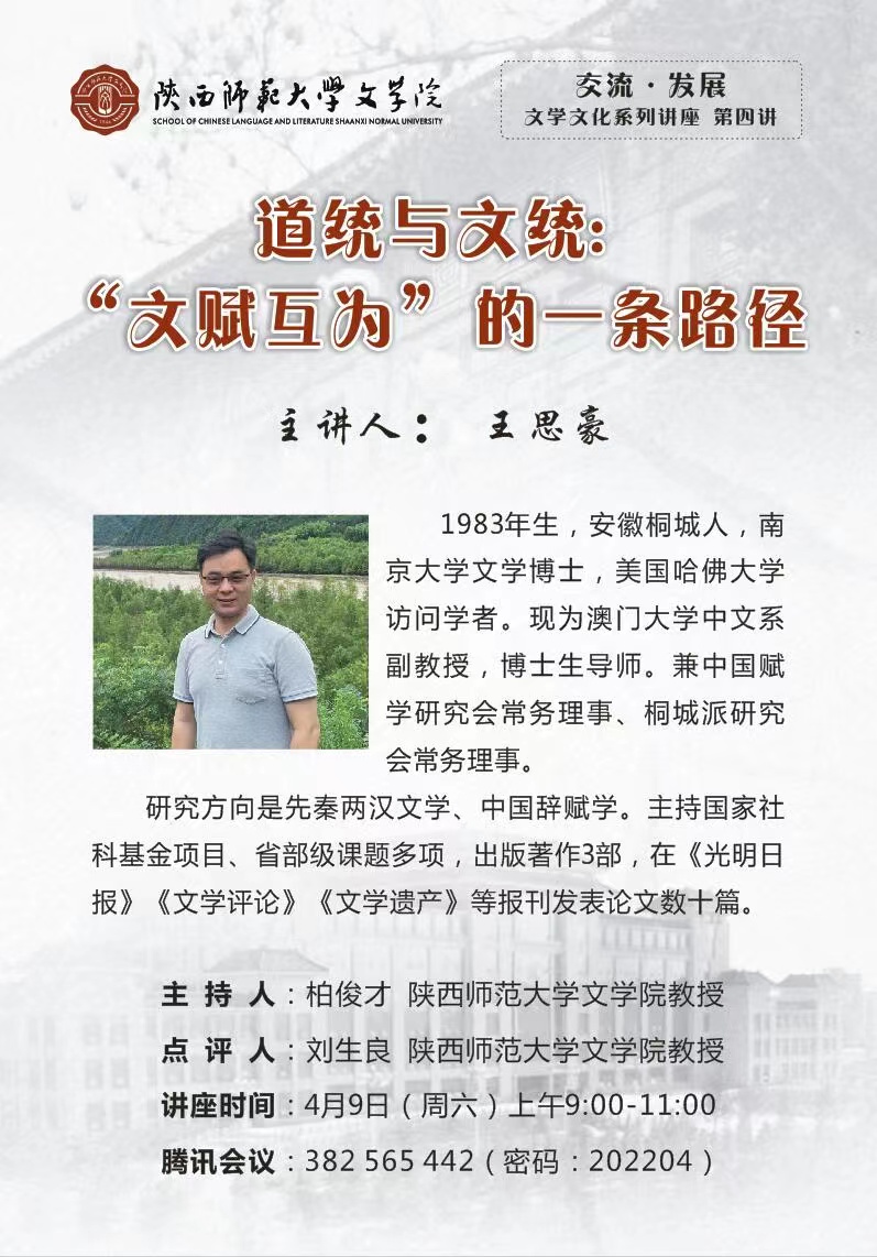 交流 发展:文学文化系列讲座(第四讲)——道统与文统:“文赋互为”的一条路径