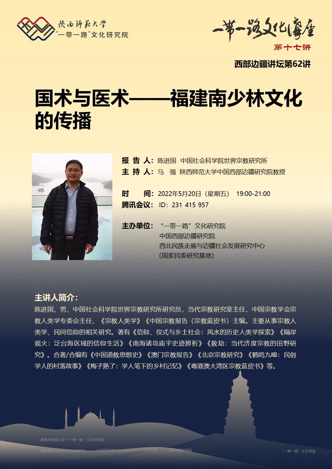 “一带一路”文化讲座(第十七讲)&西部边疆讲坛第62讲 国术与医术——福建南少林文化的传播