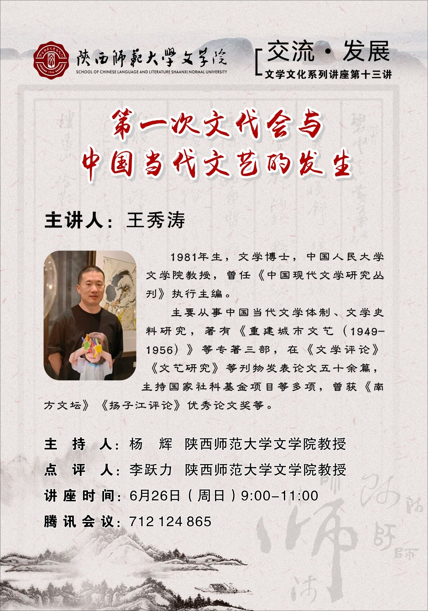 交流 发展:文学文化系列讲座(第十三讲)——第一次文代会与中国当代文艺的发生