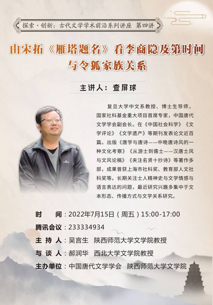 探索 创新:古代文学学术前沿系列讲座(第四讲)——由宋拓《雁塔题名》看李商隐及第时间与令狐家族关系