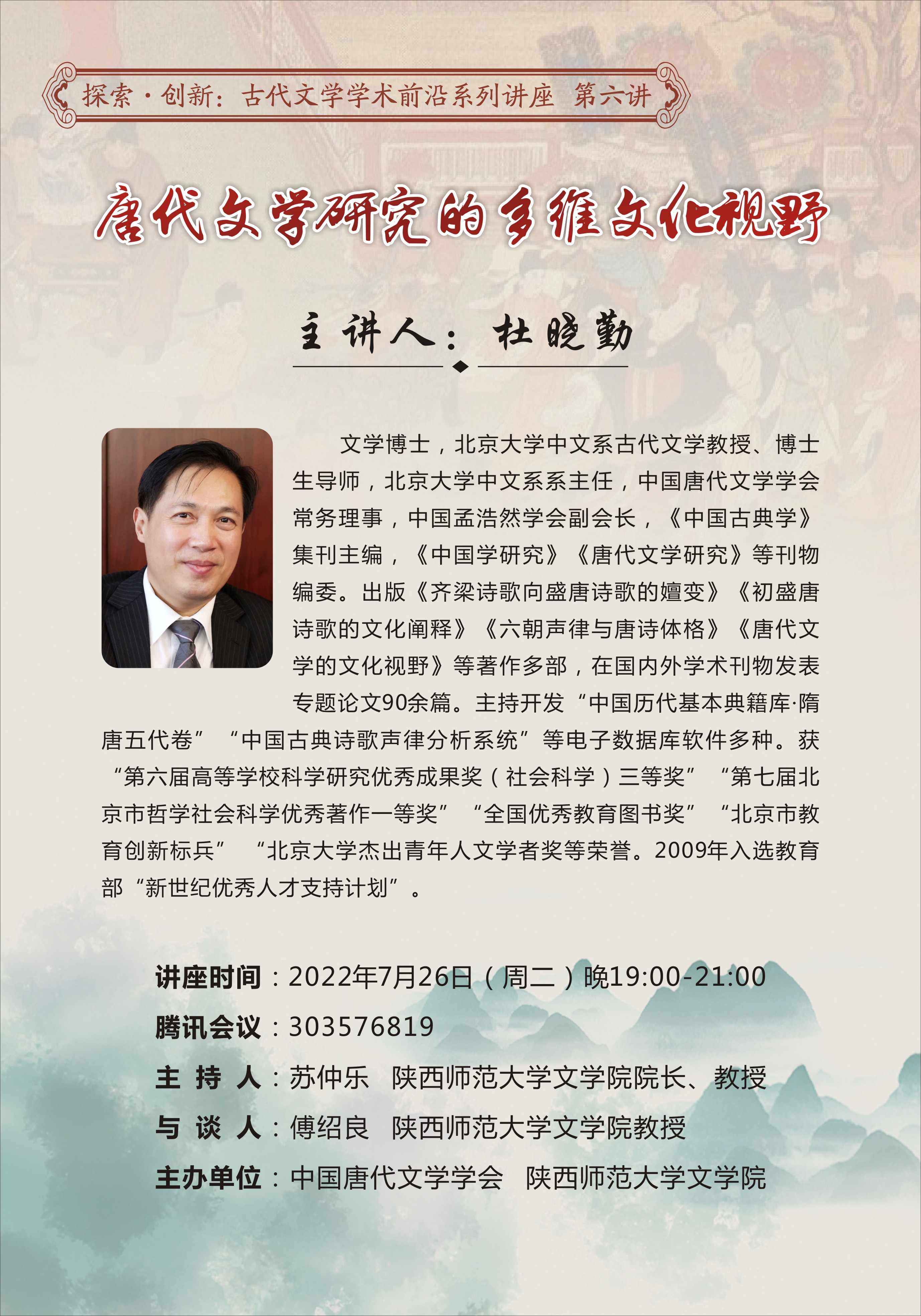 探索 创新:古代文学学术前沿系列讲座(第六讲)——唐代文学研究的多维文化视野