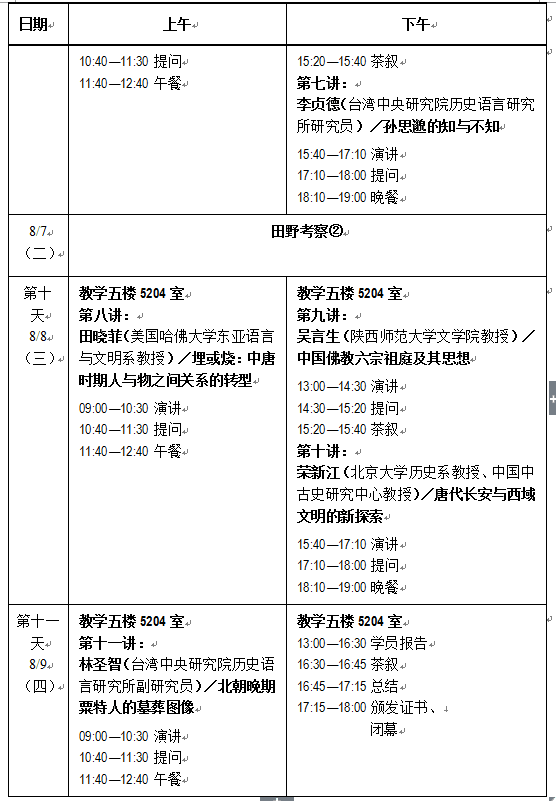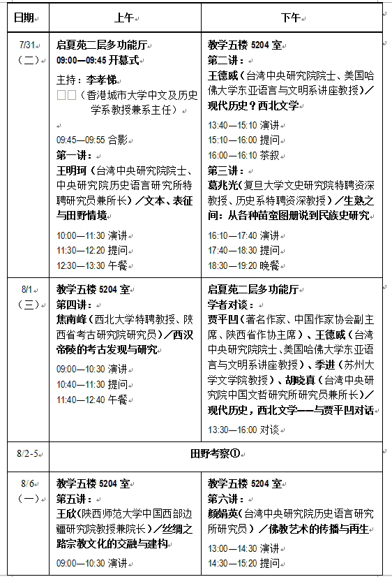 此次以“关中•外缘”为主题的两岸历史文化研习营,希望藉着走进历史现场,经由学者演讲、田野考察和文献研读,对关中文化的历史文化有切身和更深刻的体认。一方面强调文献阅读和田野考察的结合,一方面也希望从不同的学术视野和学科训练来了解关中与外缘文化。因此,在课程规划上,我们邀请了对关中与外缘文化素有研究的一流学者进行演讲,兼顾历史、文学、宗教、考古、艺术等不同面向,希望能在一个“大历史”的背景下理解“关中与外缘文化”的复杂面貌与精神特质。
