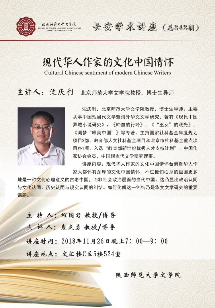 长安学术讲座总342期:现代华人作家的文化中国情怀