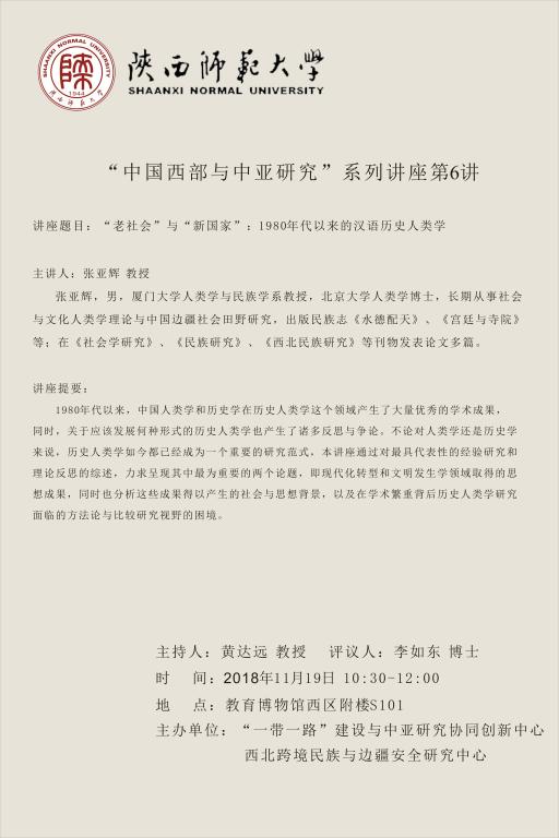 “中国西部与中亚研究”系列讲座第6讲——“老社会”与“新国家”:1980年代以来的汉语历史人类学