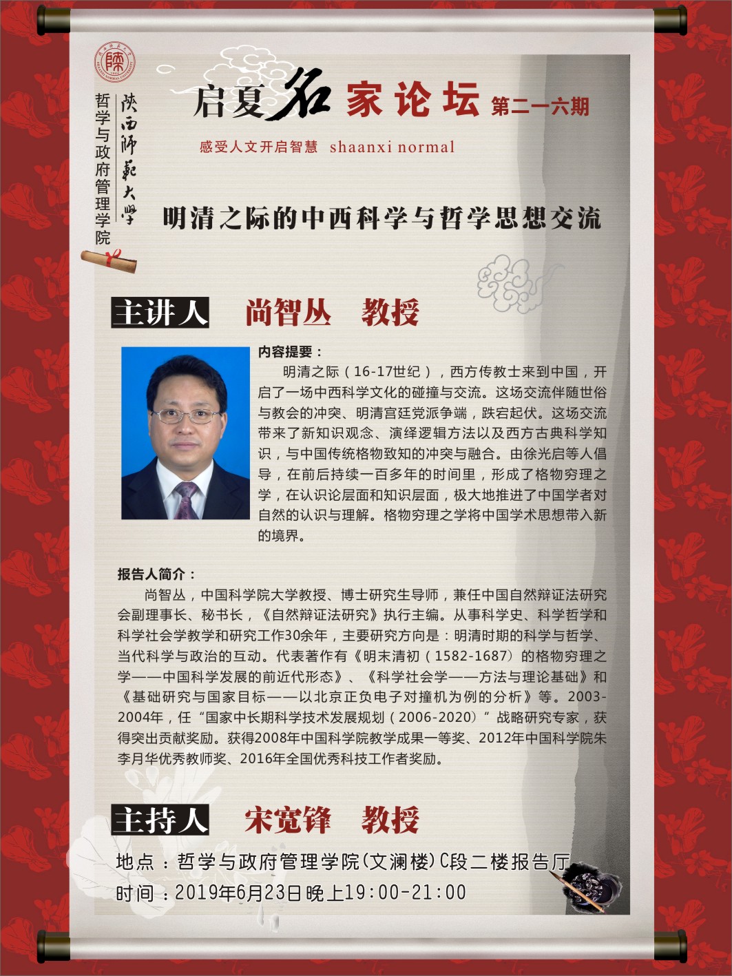 启夏名家论坛第216期:明清之际的中西科学与哲学思想交流