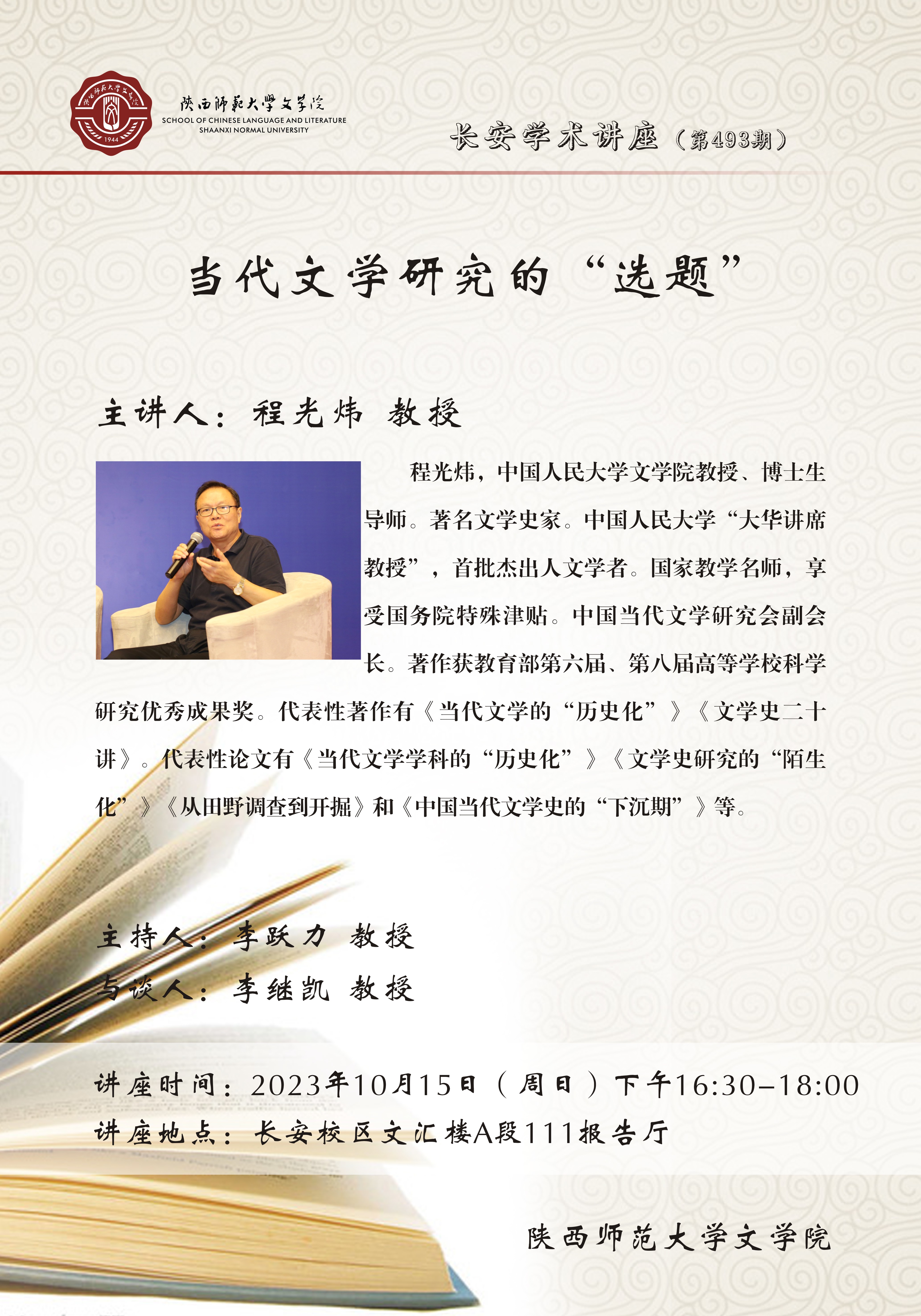 长安学术讲座(总493期):当代文学研究的“选题”