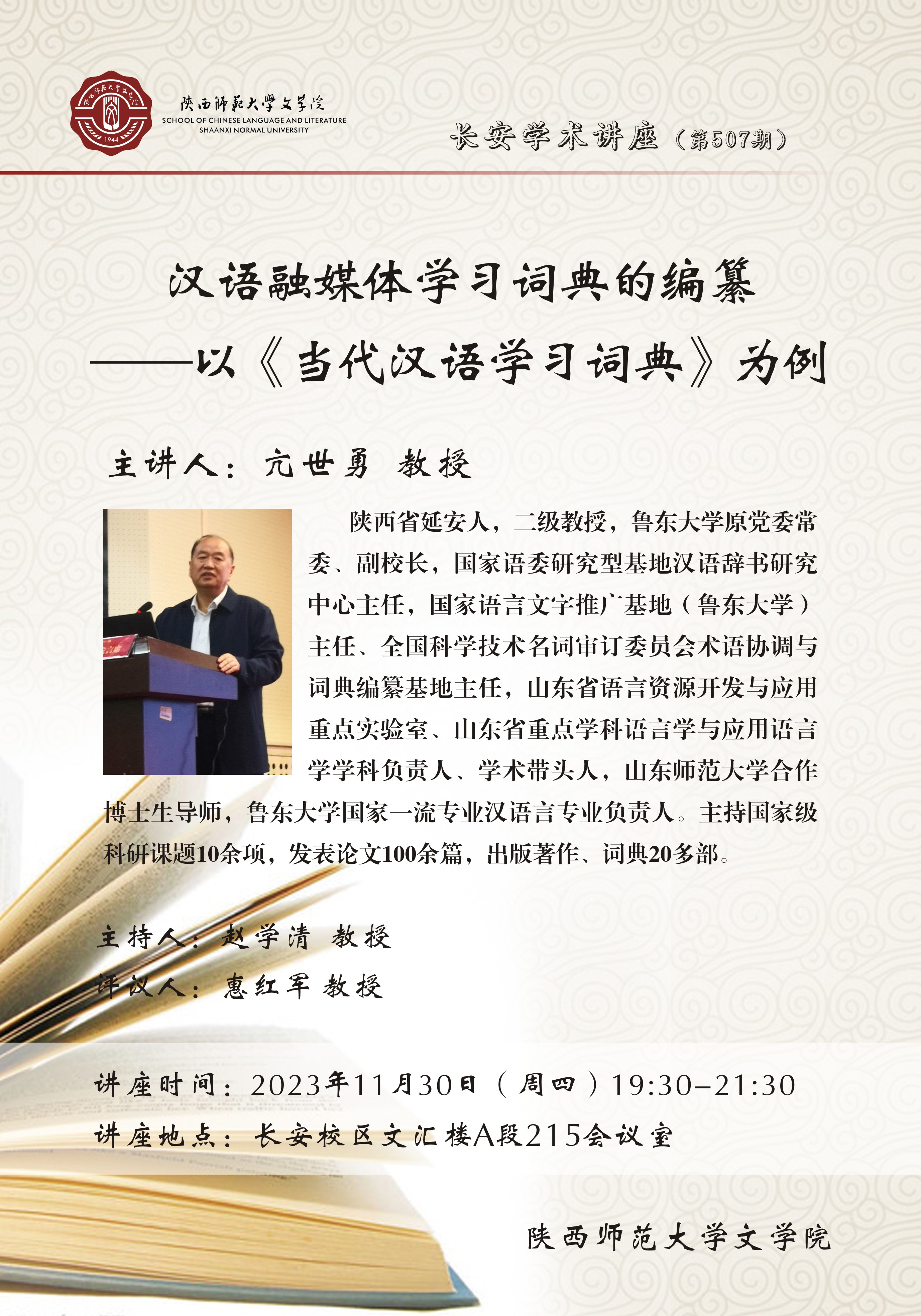 长安学术讲座(第507期) 汉语融媒体学习词典的编纂——以《当代汉语学习词典》为例