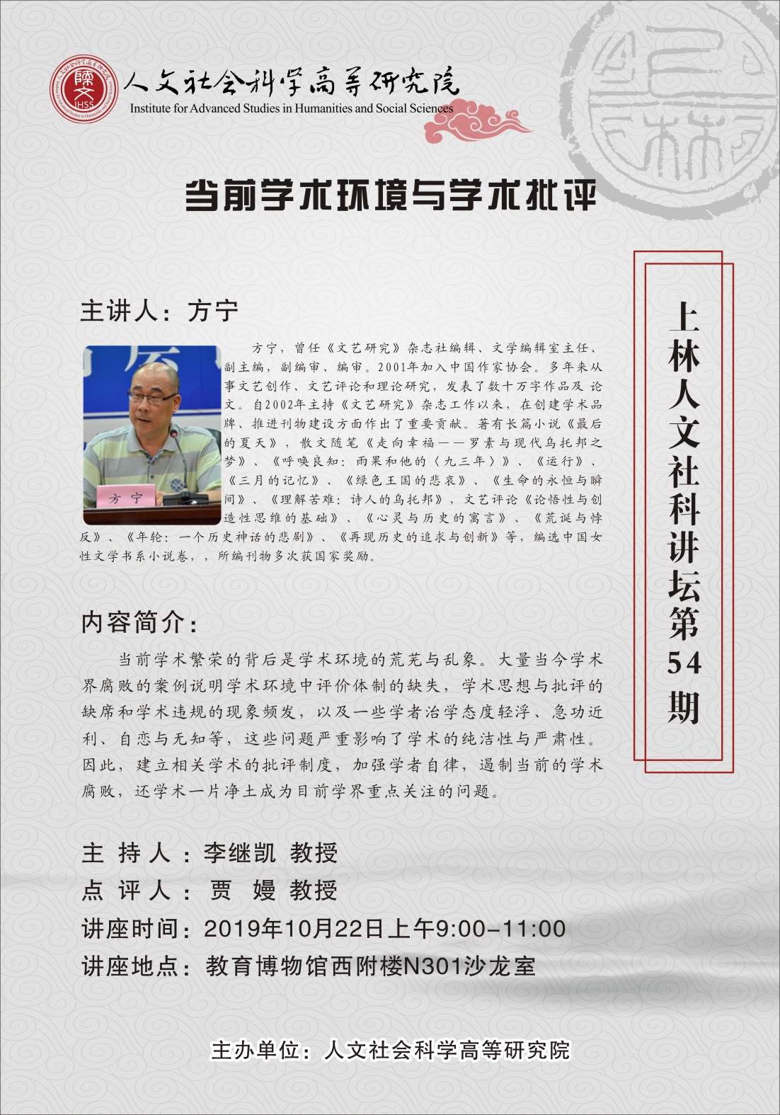 上林人文社科讲坛第54期:当代学术环境与学术批评
