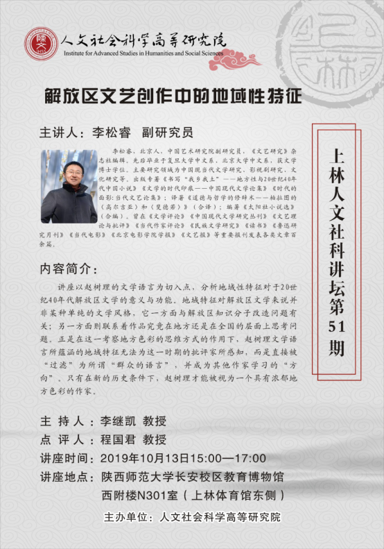 上林人文社科讲坛第51期:解放区文艺创作中的地域性特征