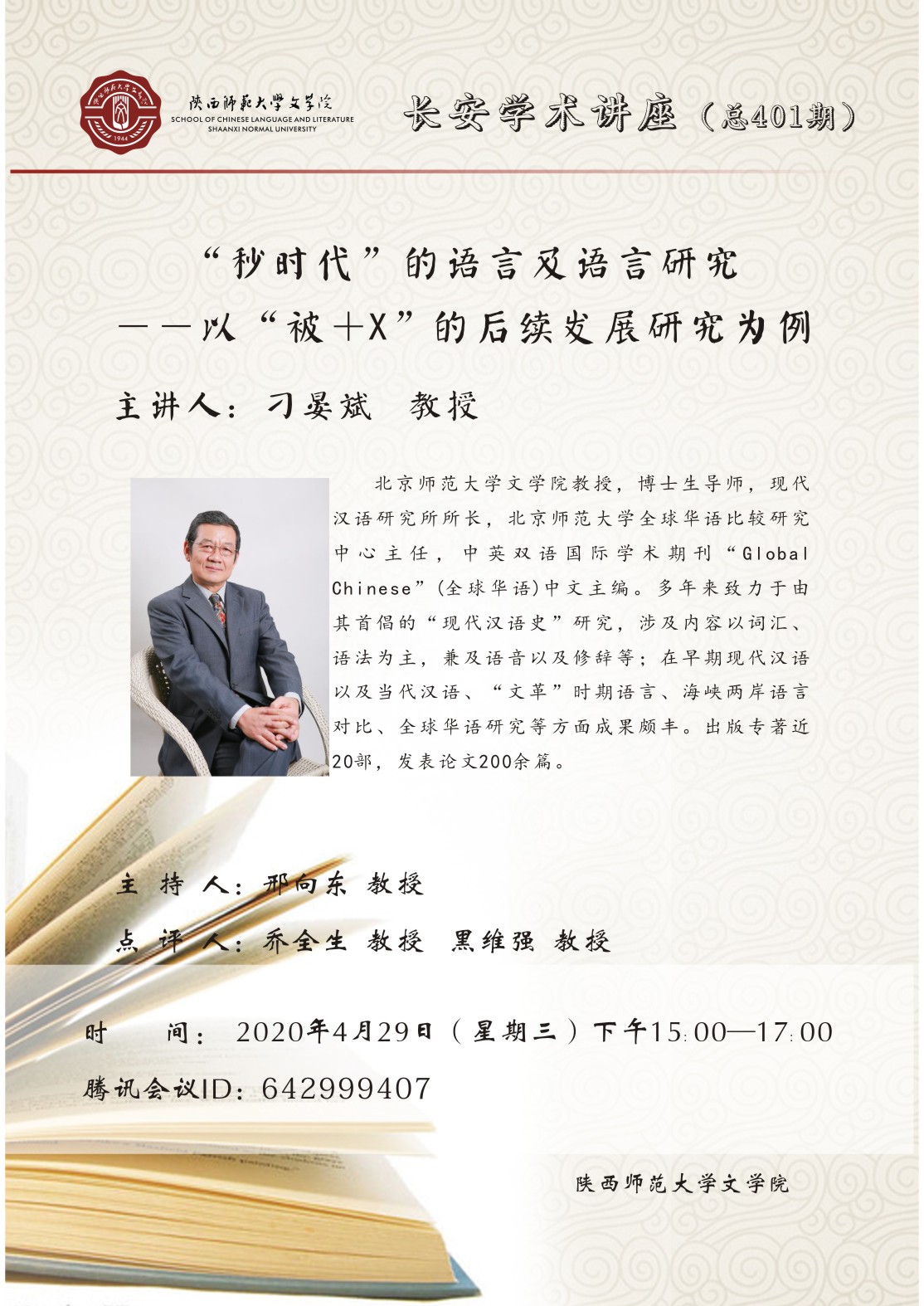 长安学术讲座(总401期):“秒时代”的语言及语言研究——以“被+X”的后续发展研究为例