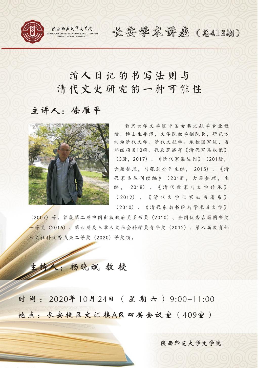 长安学术讲座(总418期):清人日记的书写法则与清代文史研究的一种可能性