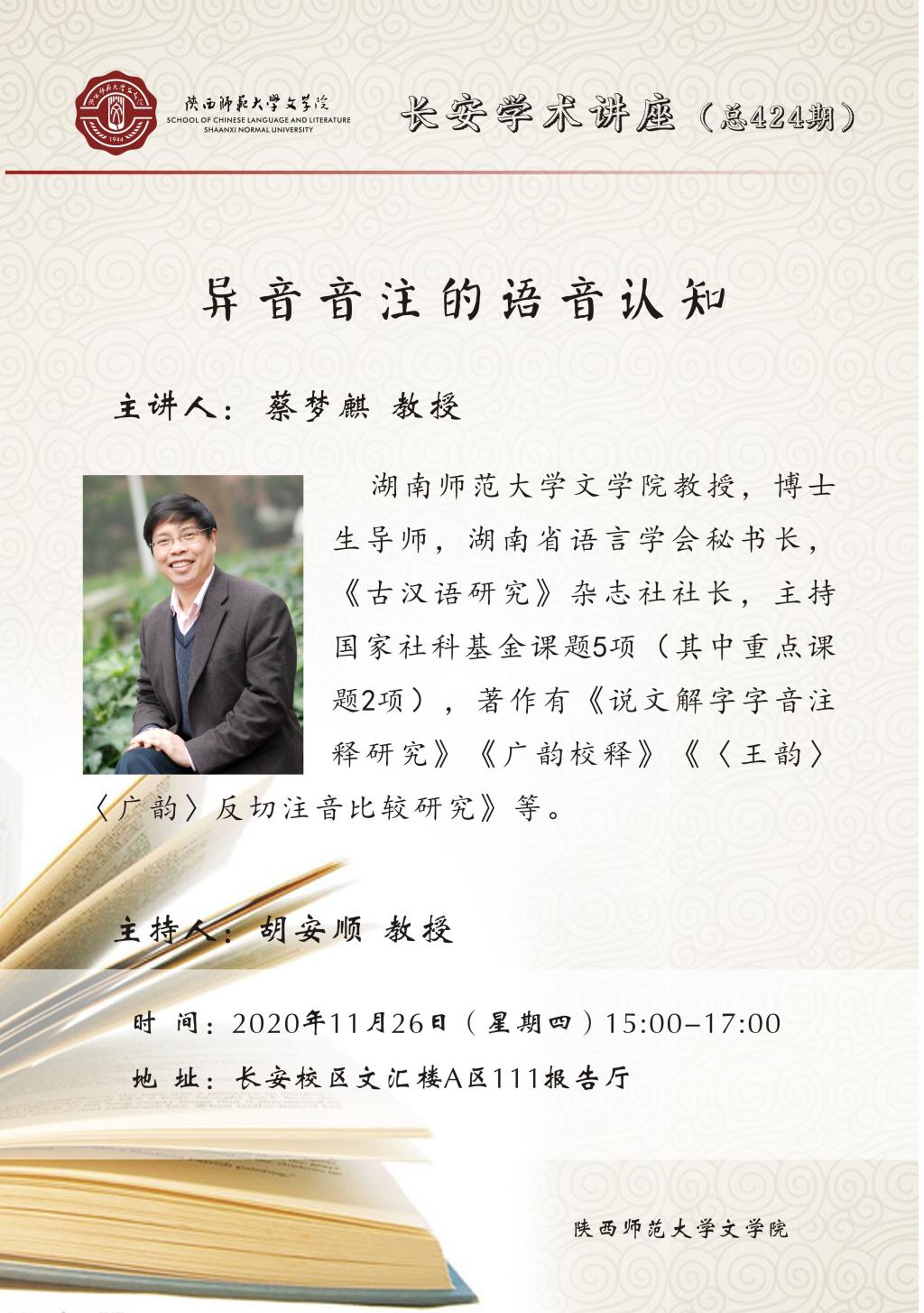 长安学术讲座(总424期):异音音注的语音认知