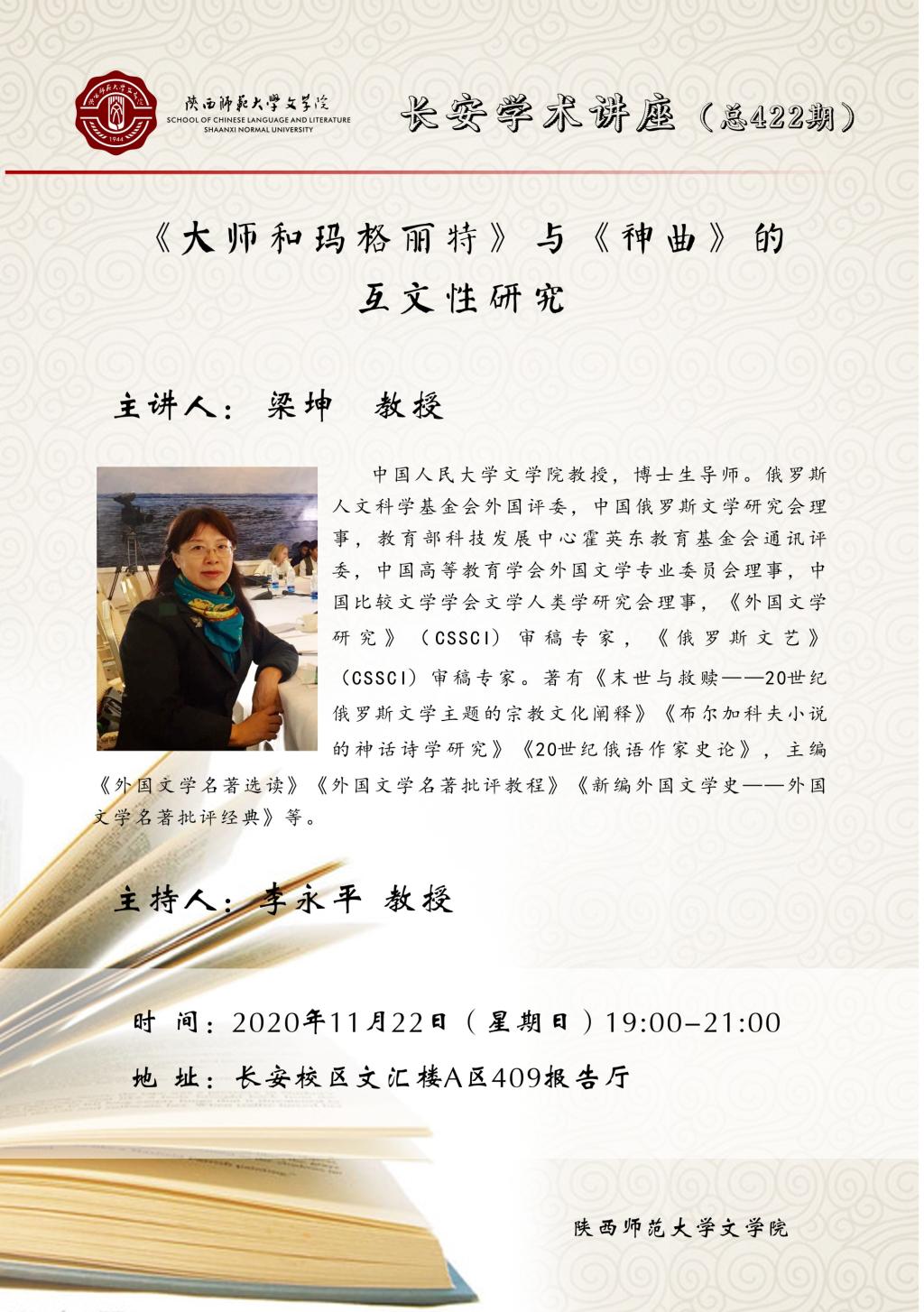 长安学术讲座(总422期):《大师和玛格丽特》与《神曲》的互文性研究