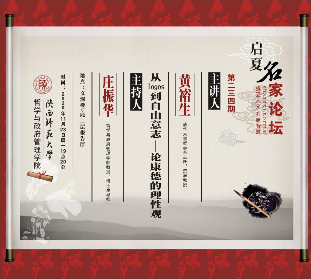启夏名家论坛第234期:从logos到自由意志——论康德的理性观