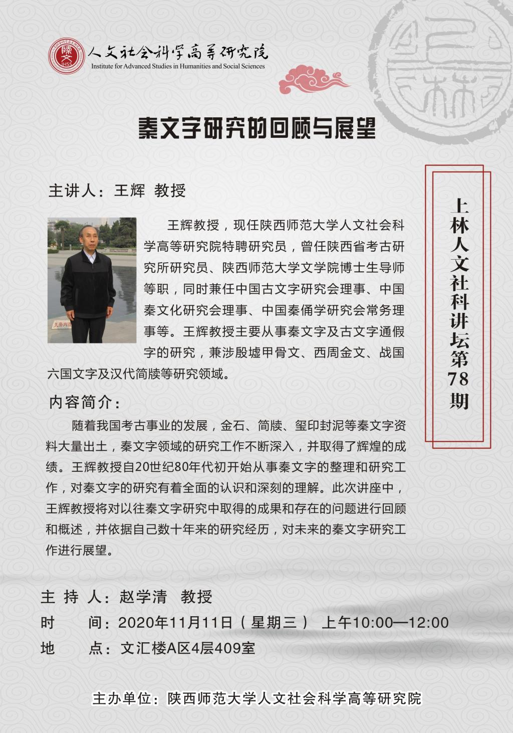 上林人文社科讲坛第78讲:秦文字研究的回顾与展望