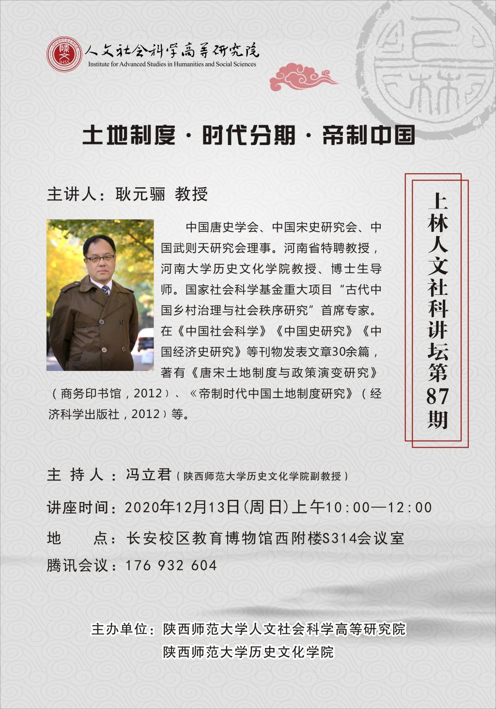 上林人文社科讲坛第87讲:土地制度·时代分期·帝制中国