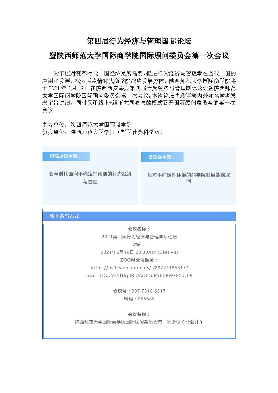 第四届行为经济与管理国际论坛暨开云kaiyun官方网站国际商学院国际顾问委员会第一次会议
