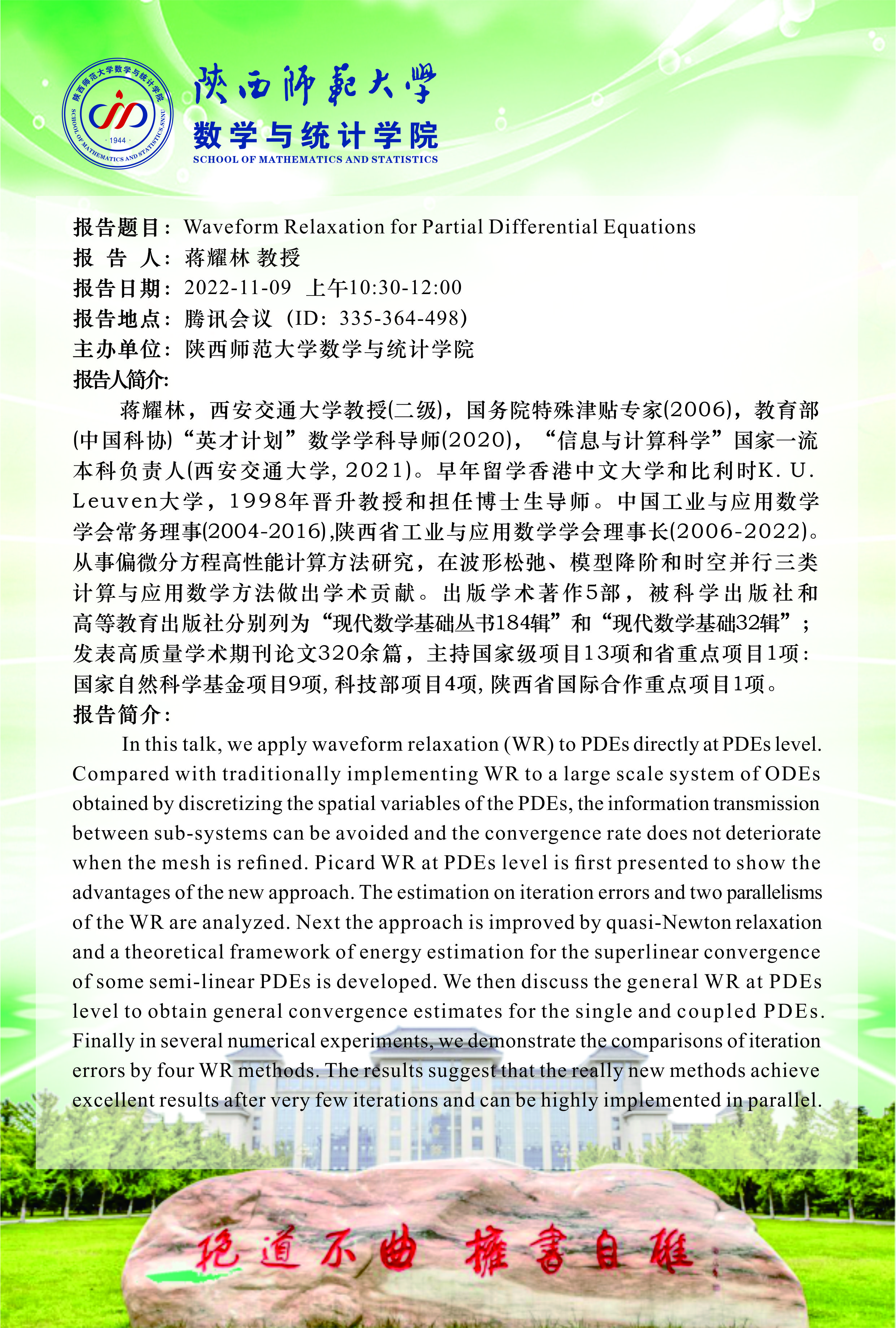 【学术活动月系列五】Waveform Relaxation for Partial Differential Equations