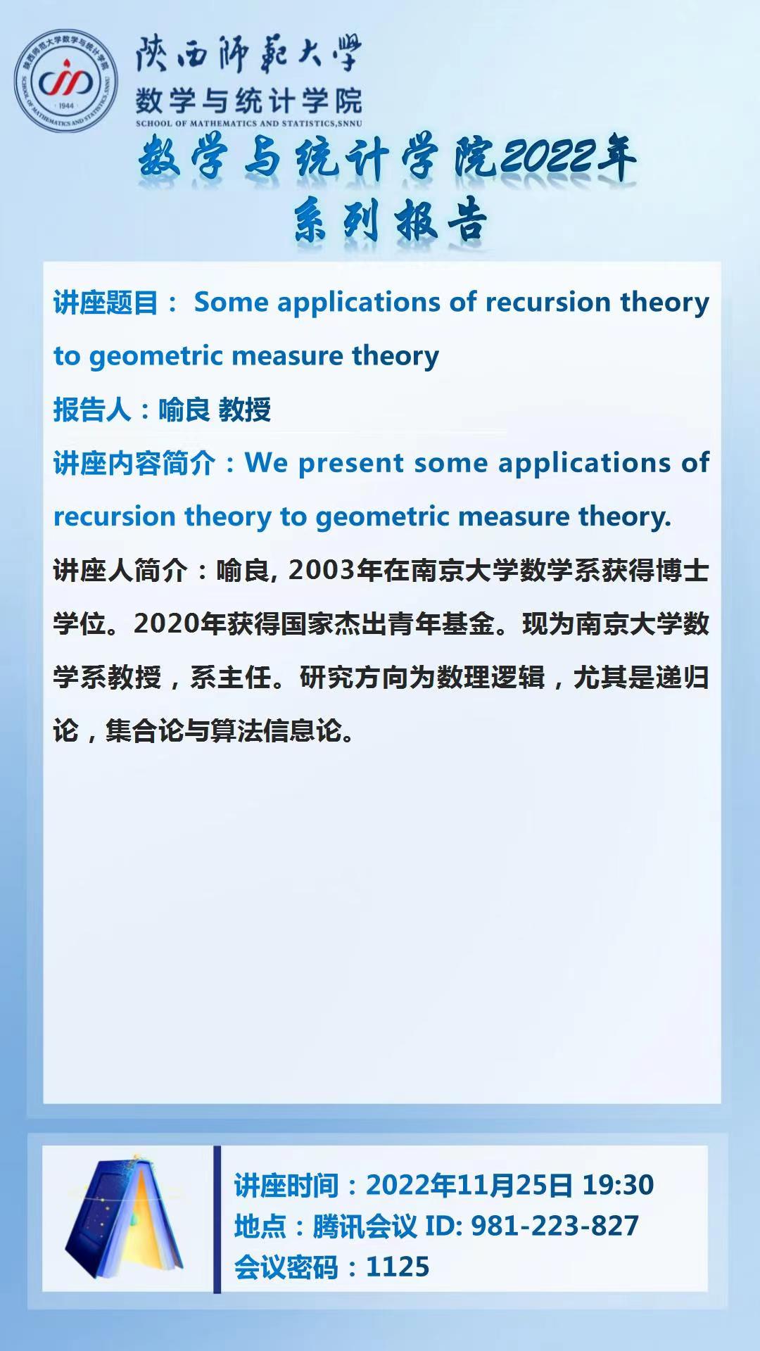 【学术活动月系列二十】Some applications of recursion theory to geometric measure theory