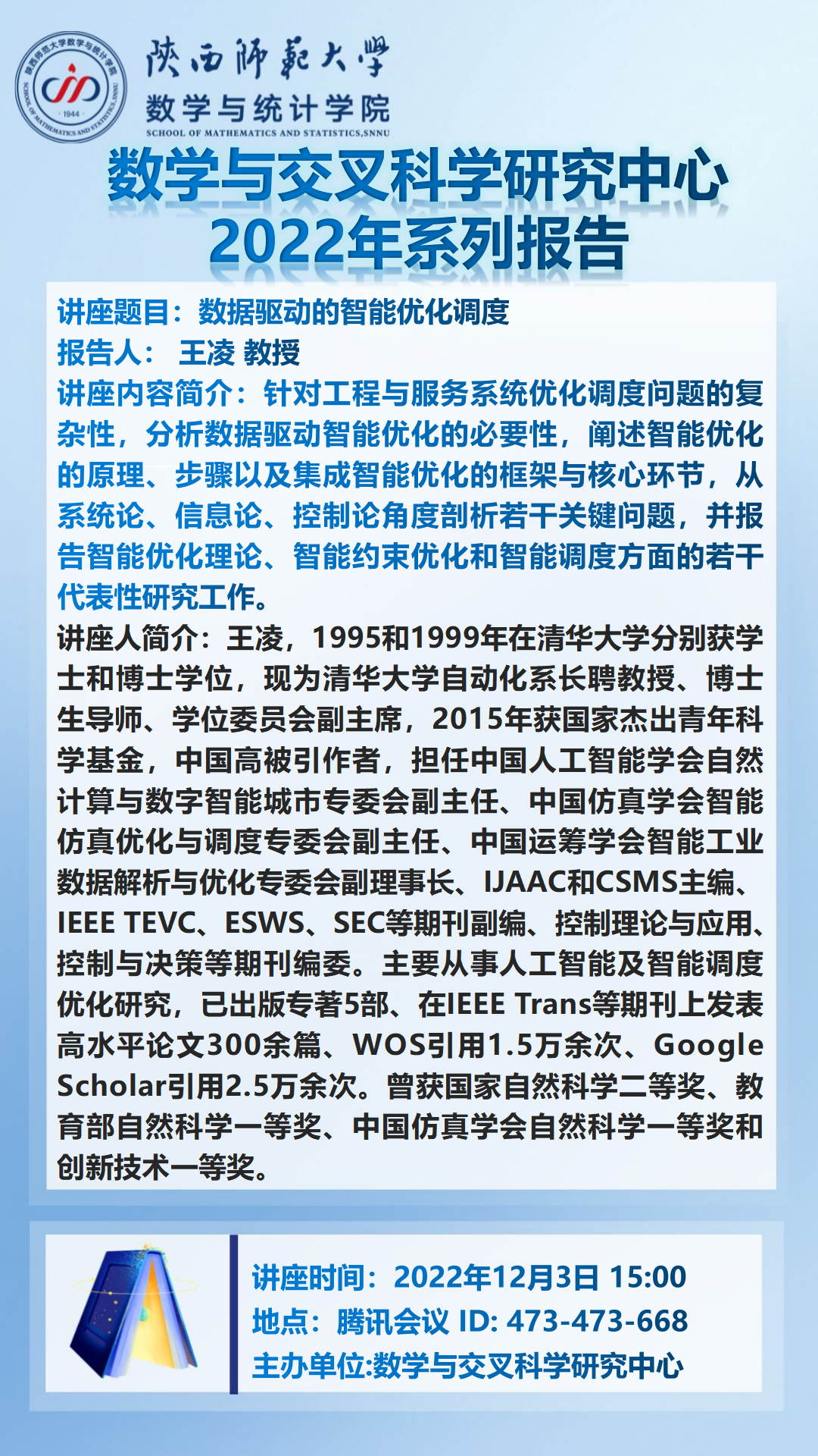 【学术活动月系列二十二】数据驱动的智能优化调度