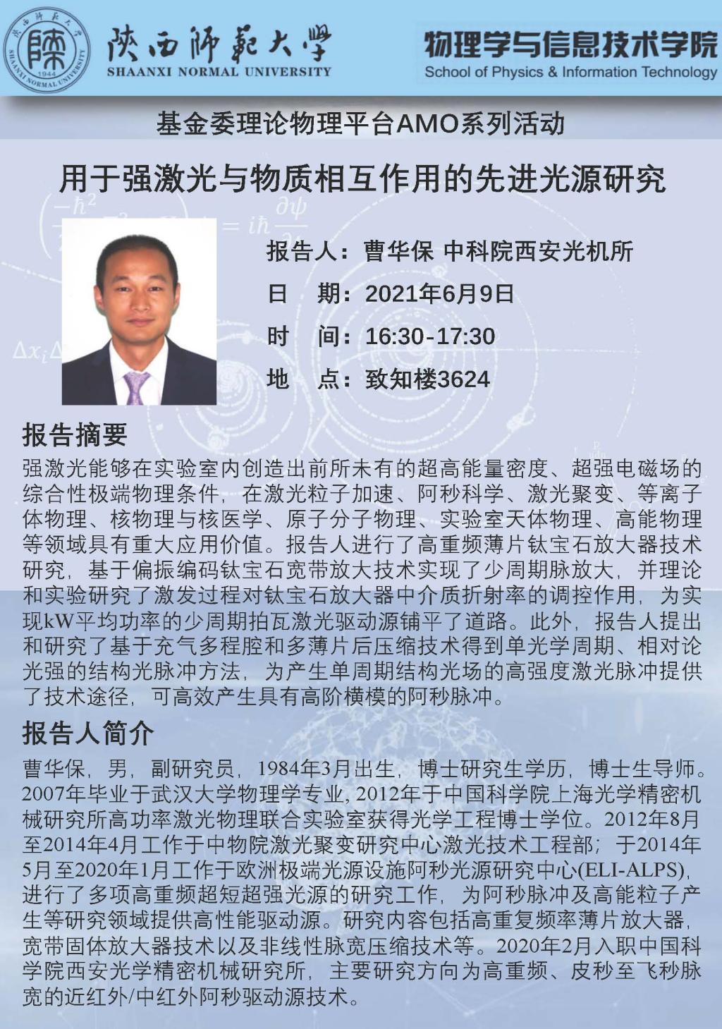 报告人:曹华保 副研究员(中科院西安光机所)