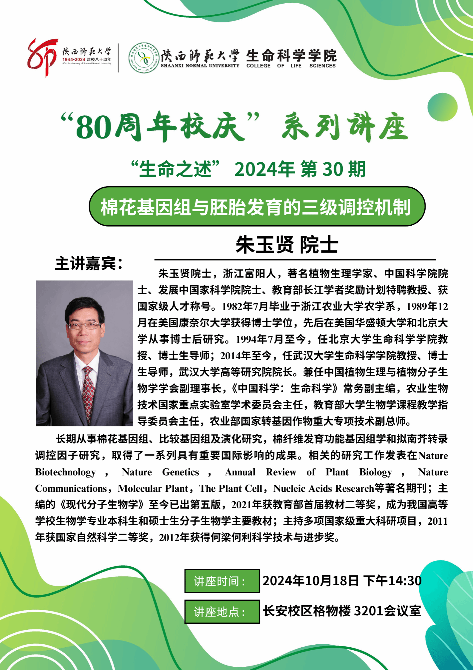 校庆80周年院士论坛(五)--棉花基因组与胚胎发育的三级调控机制