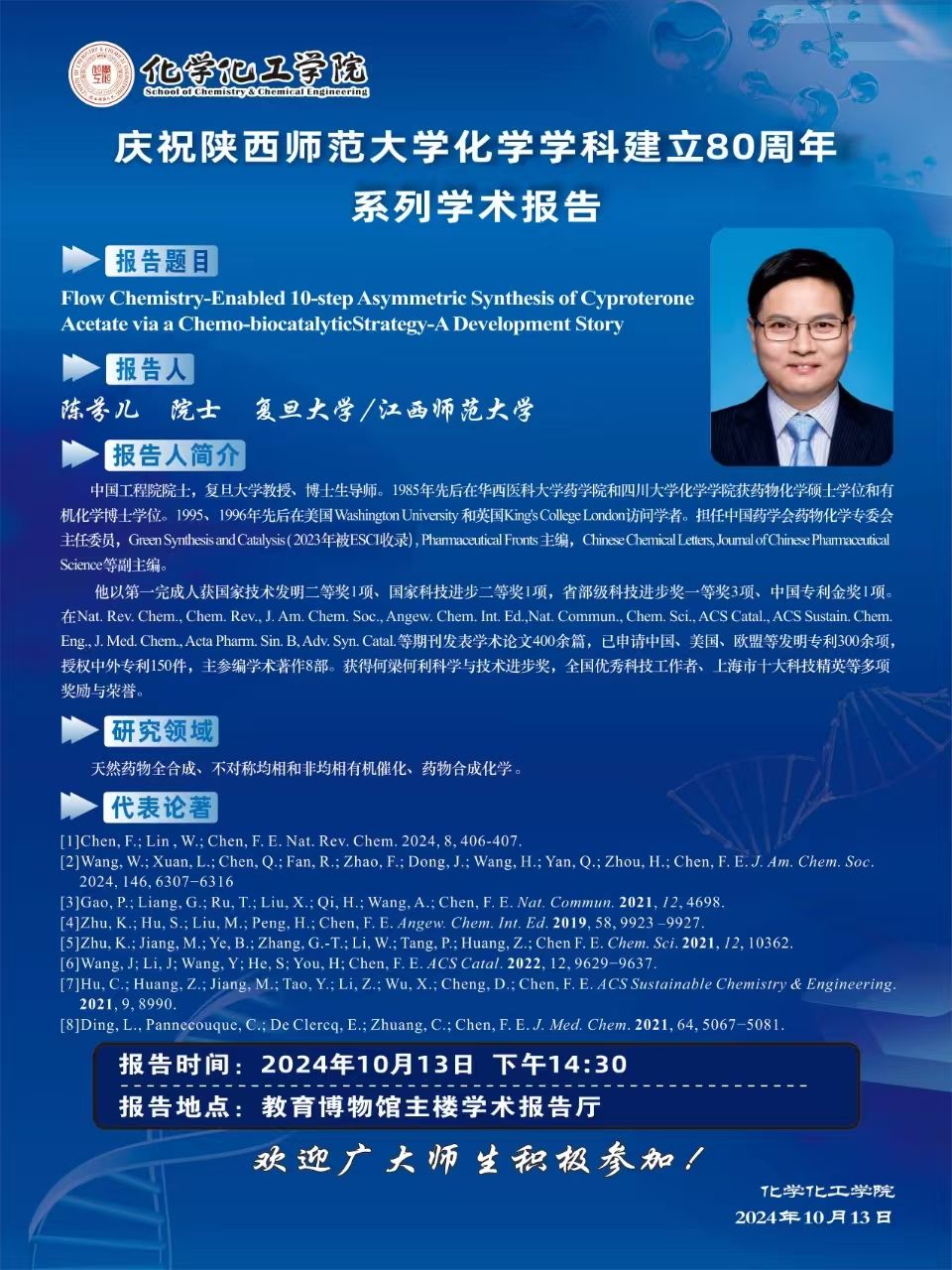 校庆80周年院士论坛(七)--Flow Chemistry-Enabled 10-step Asymmetric Synthesis of Cyproterone Acetate via a Chemo-biocatalytic Strategy -A Development Story