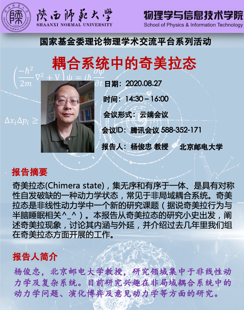 国家基金委理论物理学术交流平台系列活动——耦合系统中的奇美拉态