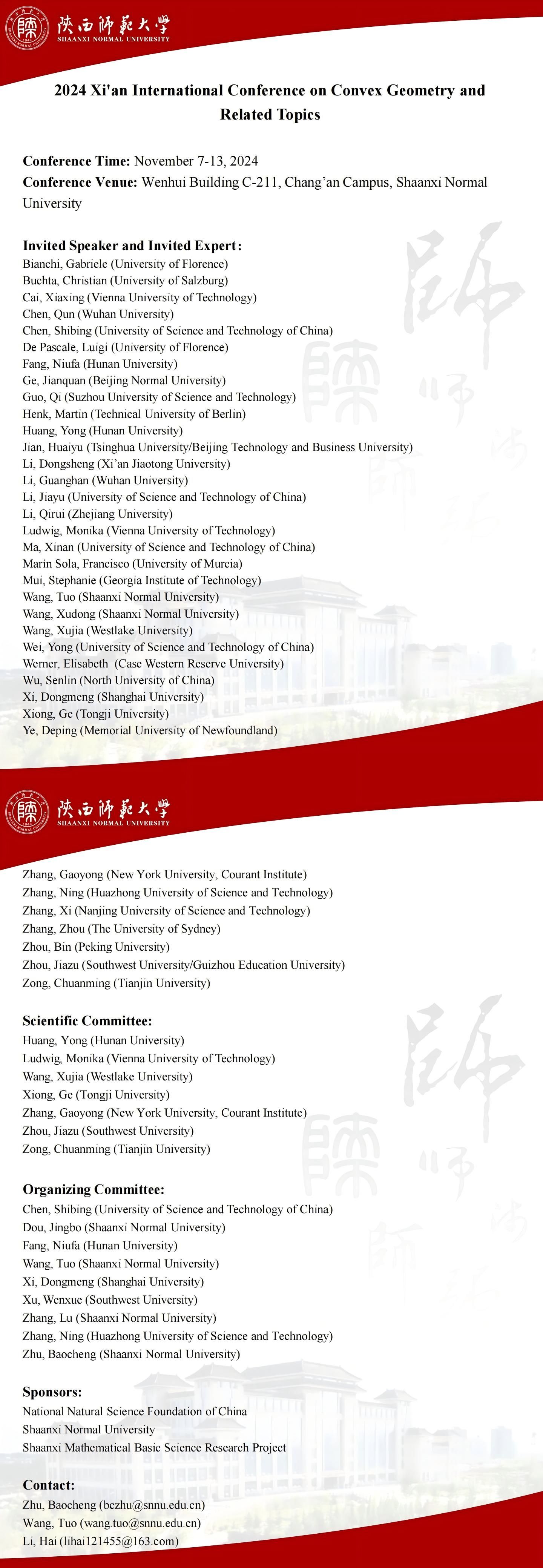 2024Xi'an International Conference on Convex Geometry and Related Topics